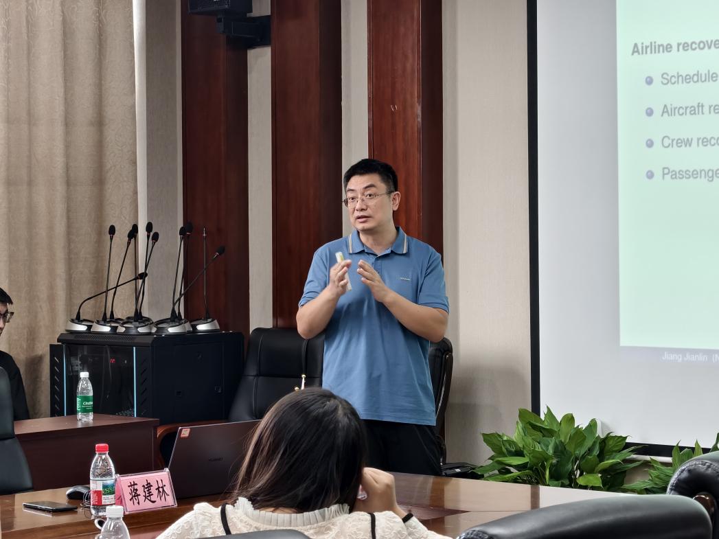 举行数海领航大讲堂2025年第22期。本期讲座邀请了南京航空航天大学蒋建林教授为全院师生带来了一场题为“Sparse-denseflightcopy-based interactive mechanismtoairlineintegrated recoverywith cruisespeedcontrol”的学术讲座。讲座由足交