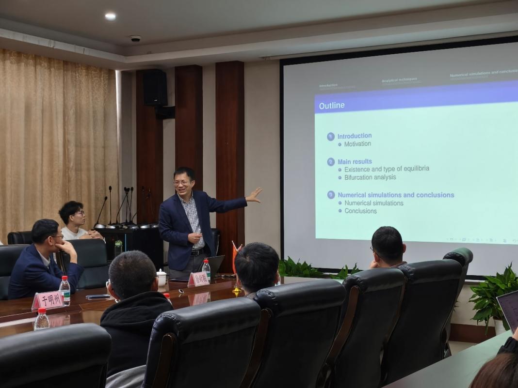 举行数海领航大讲堂2025年第23期。本期邀请中国计量大学徐衍聪教授为全院师生们带来了一场题为“A dynamical system view of p53 dynamics triggered by DNA damage”的学术讲座。讲座由足交